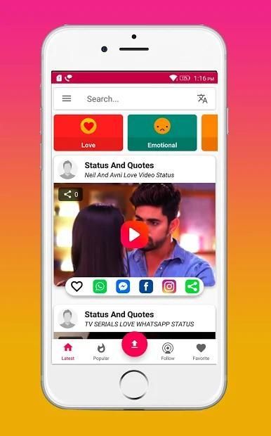You can find following categories video status in the app.