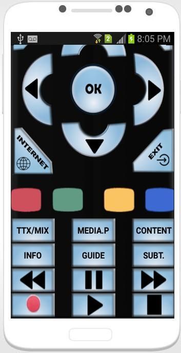 टीवी के लिए रिमोट कंट्रोल सब टीवी उपकरणों के लिए एक आईआर आधारित यूनिवर्सल रिमोट कंट्रोल, जो इस प्रकार सैमसंग टीवी, एलजी टीवी, सोनी टीवी, पैनासोनिक टीवी और इतने पर के रूप में अधिक लोकप्रिय स्मार्ट टीवी के साथ संगत है। यह एक समर्थक संस्करण है जो इस्तेमाल किया और अधिक शक्तिशाली कार्यों प्रदान करने के लिए आसान है।