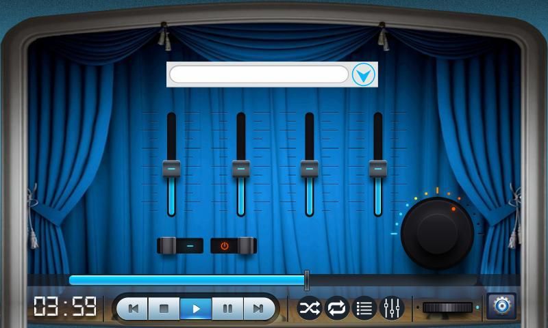 तुल्यकारक इस ऐप्लिकेशन में बास और मात्रा के साथ जोड़ा जाता है।