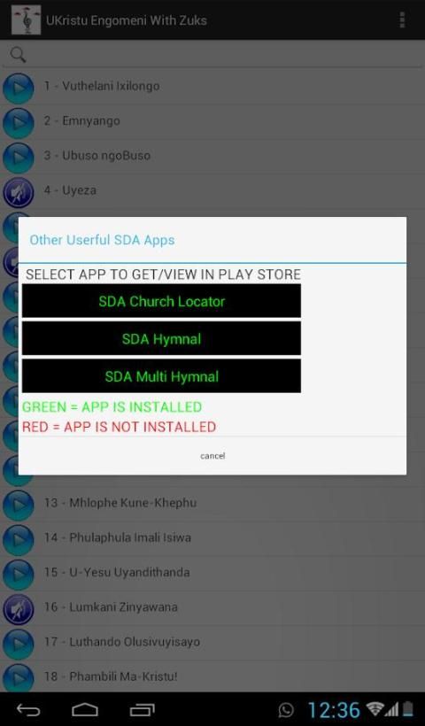 इस बॉक्स में यह और अधिक आसानी से सुलभ बनाने के इस प्रकार मोबाइल एप्लिकेशन के तहत अंतरिक्ष को सातवें दिन Adventist खोसा स्तोत्र "UKristu Engomeni" लाने की उम्मीद के साथ बनाया गया है.