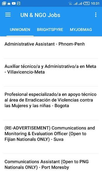 The App presents you with the latest UN recruitment, NGO vacancies near you for free.