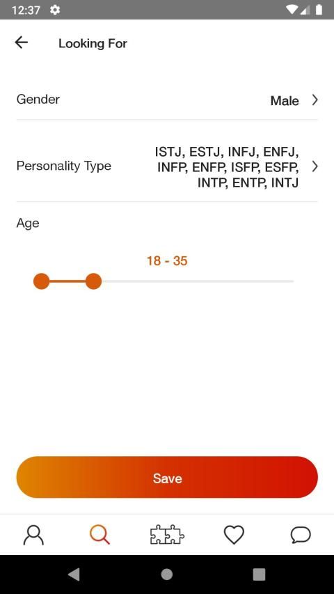 एप्लिकेशन आपको उन लोगों के लिए खोज करने की अनुमति देता है जो आपको मानते हैं कि आपके पास एक व्यक्तित्व प्रकार है जो आपके साथ संगत है, उनके साथ मेल खाता है, और फिर डेट पर बाहर जाना है!