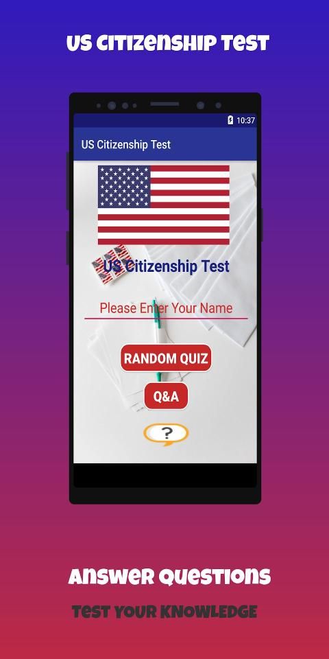 Are you ready to become a US Citizen? If so, you must pass the US mandatory Citizenship test. This app is designed to make it easier for you to study and pass the Test. You will find all of the questions and if you don't know the answers, don't worry we made it easier. You have all the solutions as well!! Learn about America's history and all the rights and responsibilities of being an American testing yourself everyday on your Android phone.