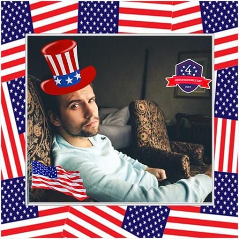 Flag photo editor having a Us flag photo frames displaying the American flag on your face.