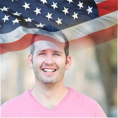 फ्लैग फोटो एडिटर जिसमें हमारे चेहरे पर अमेरिकी ध्वज को प्रदर्शित करते हुए एक फ्लैग फोटो फ्रेम होता है।