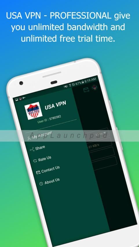 यूएसए वीपीएन - व्यावसायिक आपको असीमित बैंडविड्थ और असीमित मुफ्त परीक्षण समय देता है।