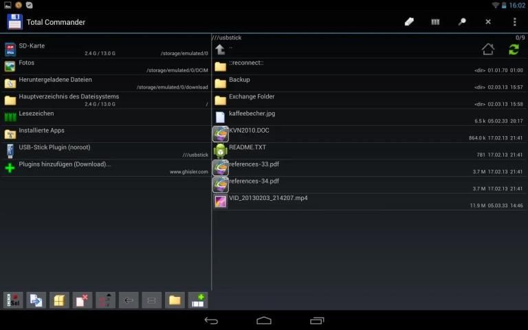 The filemanager Total Commander can be installed from the Play-Store: