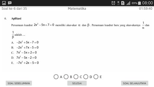 यह एप्लिकेशन एसएमके / एमएके छात्रों के लिए एक स्कूल परीक्षा सिमुलेशन एप्लिकेशन है।इंडोनेशियाई मेपल, अंग्रेजी, गणित, डिजिटल सिमुलेशन, पीपीकेएन, और पीएआई-बीपी से युक्त।प्रश्नों के 2 प्रकार हैं, अर्थात् एकाधिक विकल्प और निबंध।एक लकड़ी, टाइमर, उत्तर कुंजी, और सभी प्रश्नों के साथ अच्छी तरह से चर्चा की गई।