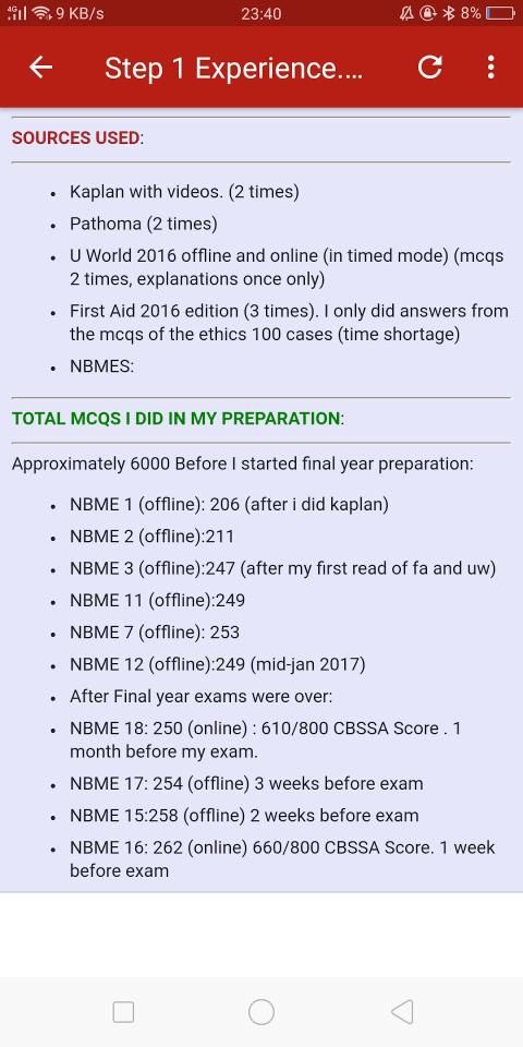 This application contain Step 1 High Scores and experiences of various past takers from various Nationalities.