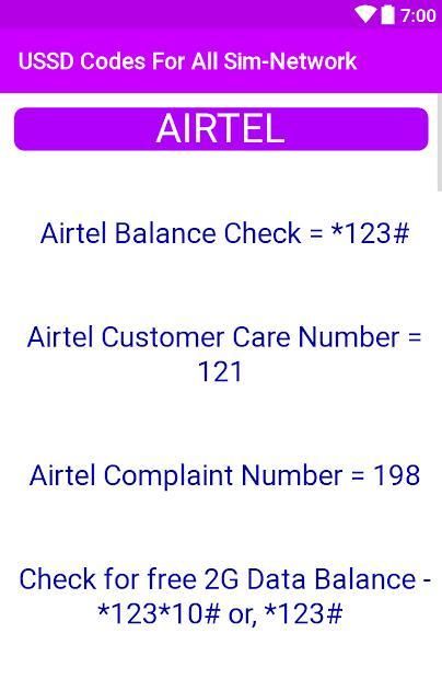 आपको बैलेंस, डेटा बैलेंस, 3 जी बैलेंस, 2 जी बैलेंस, स्पेशल ऑफर्स इत्यादि जैसे सभी ऑपरेटरों के लिए सभी प्रकार के यूएसएसडी मोबाइल कोड मिलेंगे।