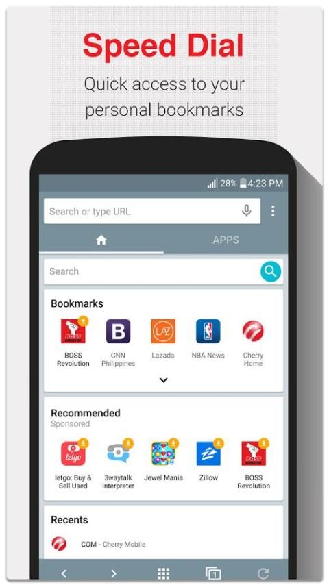 • बुकमार्क और हाल के साथ पूरी तरह से अनुकूलन स्पीड डायल