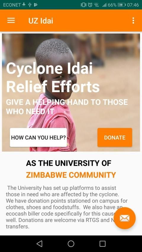 चक्रवात द्वारा। हमारे पास कैंपस में तैनात दान बिंदु हैं