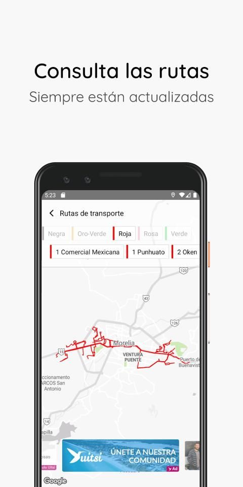 एक आसान उपयोग ऐप आपको उन मार्गों को देखने की पेशकश करता है जो स्वचालित रूप से अपडेट किए जाते हैं, साथ ही विभिन्न खोज संभावनाएं भी। इसे Uitsi द्वारा लॉन्च किया गया है, जो मैक्सिको में दिलचस्प स्थानों को खोजने के लिए एक मंच है।