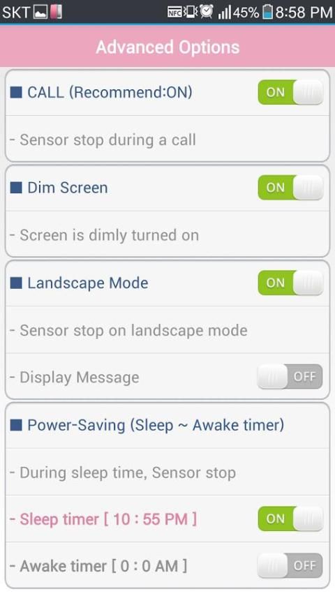 नींद टाइमर चल दौरान 1., सेंसर बंद कर दिया जाएगा।