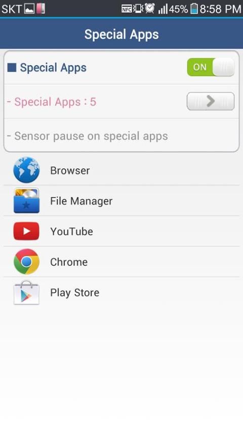 3. जब विशेष अनुप्रयोग, सेंसर ठहराव चल रहा है।