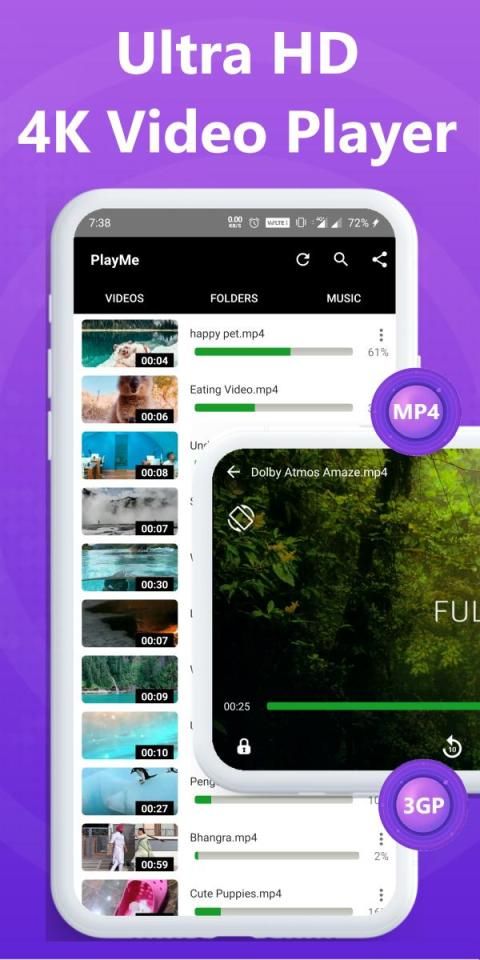 PlayMe supports all popular video formats such as MKV video player, FLV video player, MP4 video player, AVI video player and many more.