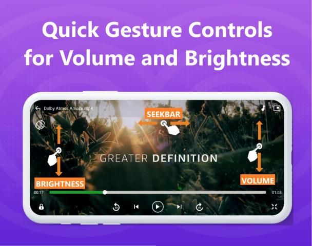 PlayMe Video Player also has the gesture control functionality which makes it very easy to increase or decrease either volume or brightness.