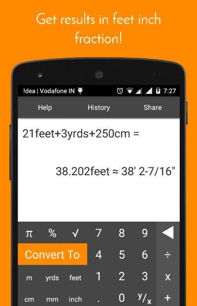 You will be able to use the response from the calculator directly on your measuring tape in the real world. The calculator also allows you to enter in questions in the form of feet inch and inch fraction easily. All of this makes this app the best measurement converter there is on the Play store.