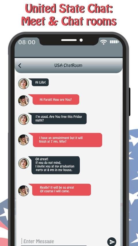 is an amazing chat app to chat and meet with new friends of the US. Use this amazing Chat app with the best messaging service to text new friends or keep in touch with anyone. App has an excellent way to meet and stay connected with US people, have fun with them totally free, sending funny pictures, chat privately, videos, and make new friends, the format is simple and easy to use.