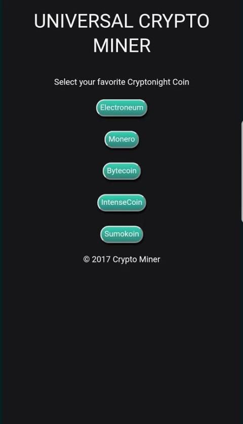 अपने स्मार्टफोन के साथ Cryptonight एल्गोरिथ्म आधारित सिक्के (जैसे Monero, Electroneum, Bytecoin, IntenseCoin और Sumokoin) खनन के लिए एक सरल और कुशल अनुप्रयोग।