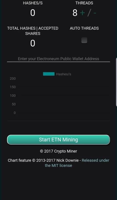 अस्वीकरण: इस Cryptonight एल्गोरिथ्म आधारित सिक्के खनन के लिए संकल्पना एप्लिकेशन का एक सबूत है। उदाहरण के लिए इस एप्लिकेशन को कर सकते हैं खनन (Monero, Electroneum, Bytecoin, IntenseCoin और Sumokoin cryptocurrency सिक्के) और हम खनन पूल ऑपरेटर्स / Hoster या इस Cryptocurrency कंपनी के साथ संबद्ध नहीं हैं।