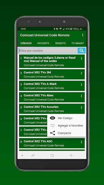 Los Códigos del controlador remoto de tu Comcast Universal esta app te permite seleccionar rápidamente miles de códigos de fabricantes de tv para que pueda configurar su mando o (Control) para la televisión. Codigo de controlles universales de