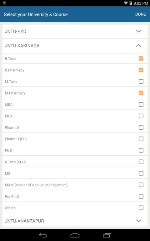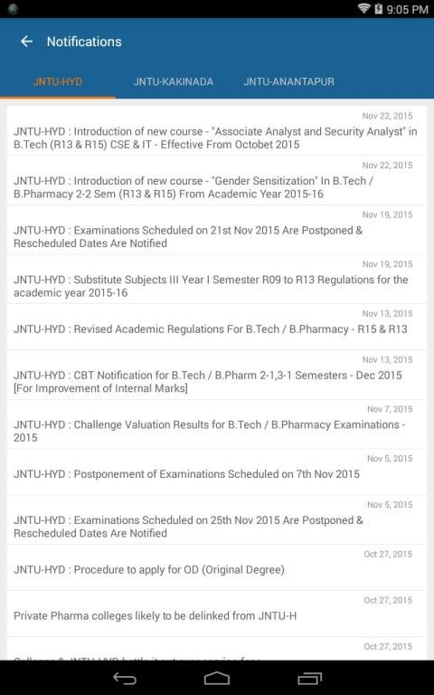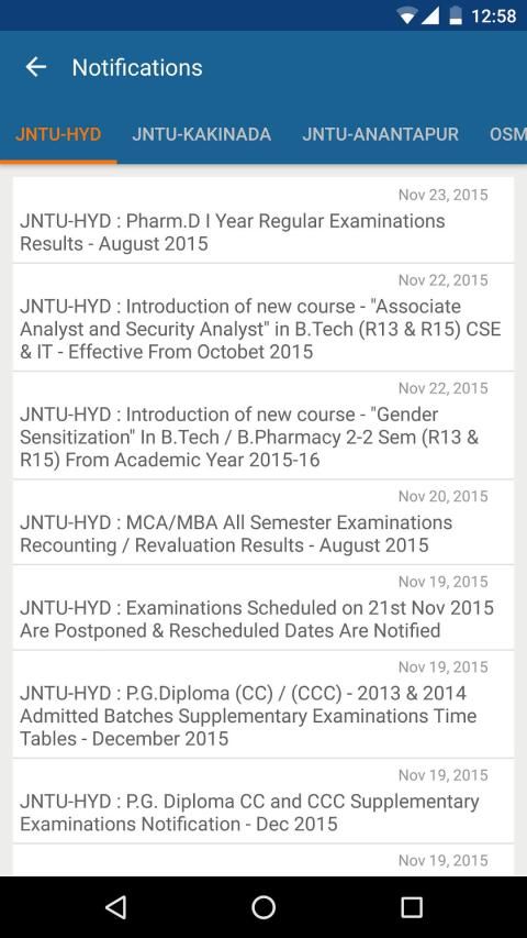 You can receive instant updates/alerts on Examination Notifications, Results, Time Tables, Almanacs/Academic Calendars, Syllabus & any other events of the following universities & their respective courses.