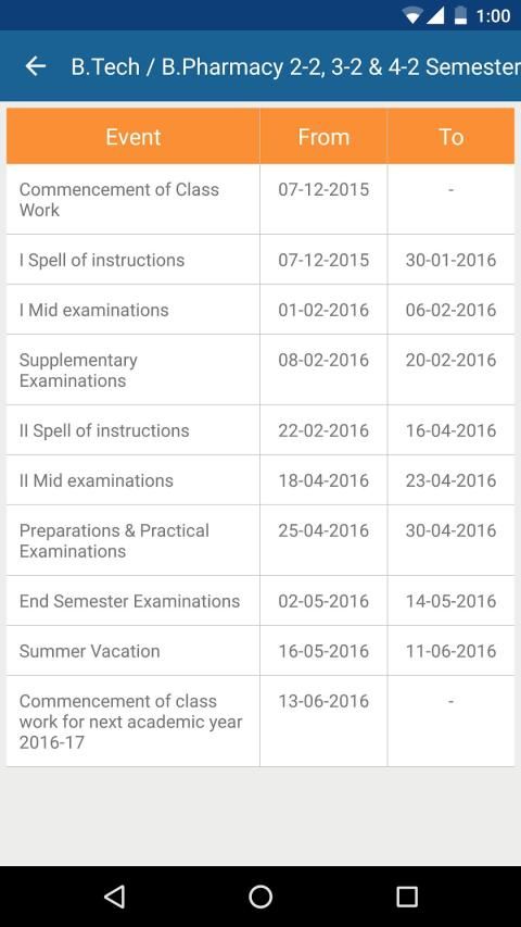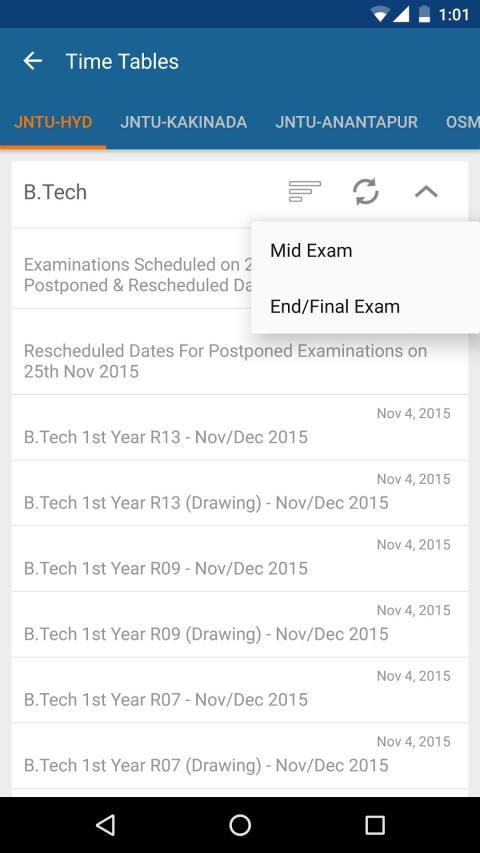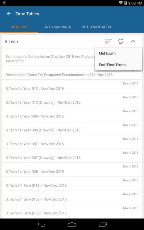 2. In App Time Tables [Mid & End Exams For all Universities]