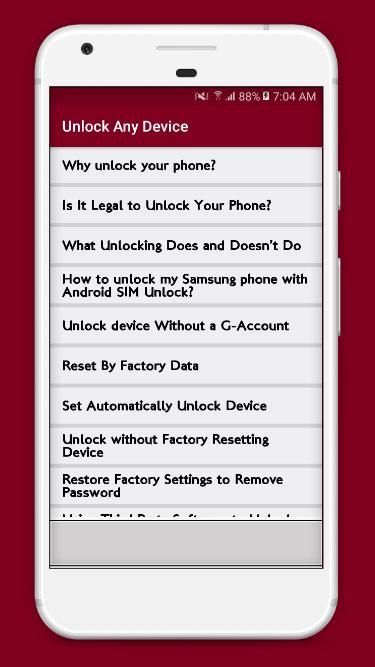 Unlock any device guide and techniques app provides guide to unlock any android devices and others. Unlock any device by remove password, Hard reset, unlock without account and much more features. Easy Unlocking Guides Process Explained.