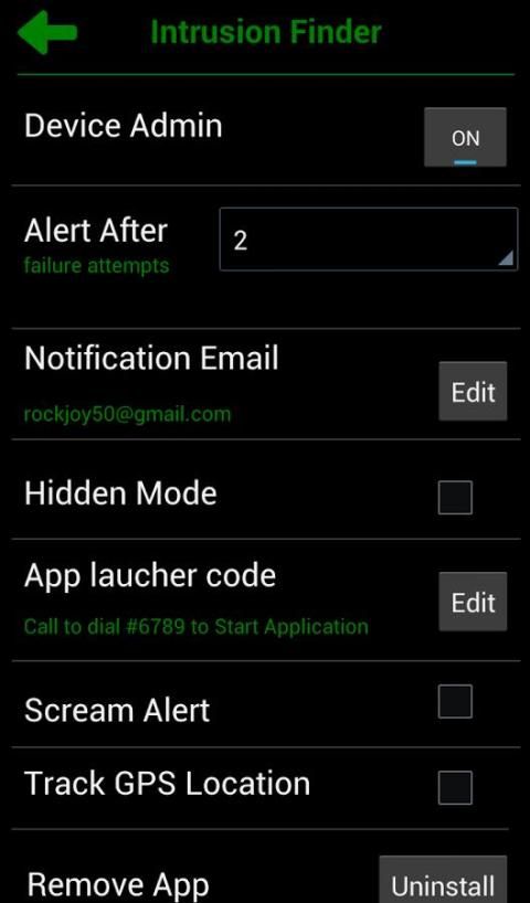 घुसपैठ खोजक किसी भी बाहर अपने ज्ञान के साथ किए गए प्रयास अनलॉक करने के लिए अपने Android मोबाइल नज़र रखता है और ईमेल के माध्यम से आपको सूचित करता है.