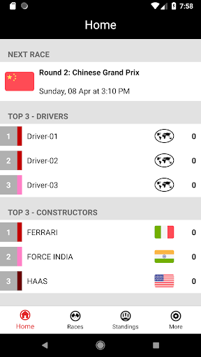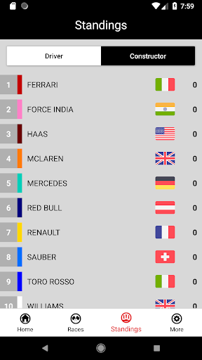 - शीर्ष 3 ड्राइवर और कन्स्ट्रक्टर्स स्टैंडिंग को सही से प्राप्त करें पहली स्क्रीन