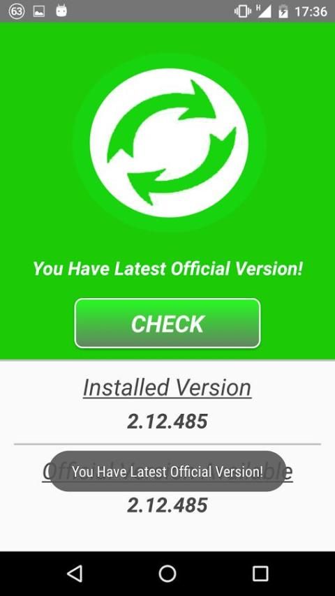 ऐसा नहीं है कि Whatsapp दुकान में अधिक से अधिक बार आधिकारिक वेबसाइट पर नई सुविधाओं के लिए अद्यतन प्रकाशित स्पष्ट है। अद्यतन WhatsApp के लिए है कि क्या आप नए संस्करण WhatsApp के आधिकारिक वेब पते पर उपलब्ध हैं जाँच करने के लिए और फिर इसे अद्यतन करने का अवसर देता है!