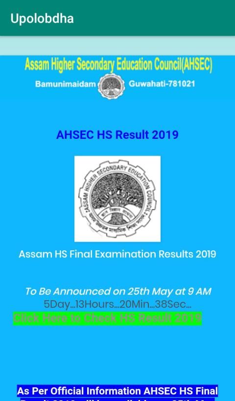 Upolobdha चेक AHSEC HS फाइनल रिजल्ट 2019 के लिए मोबाइल एप्लीकेशन है।