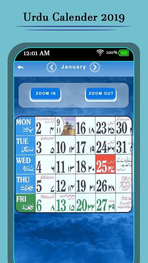 app. Application has a simple and easy way to view all details about Calendar in zoom in or zoom out tools. It is an easy way to view all details like festivals, Holiday lists, Panchang details, Auspicious days, Horoscope and many more with our Best Urdu Calendar. App with a view all details about the calendar offline.