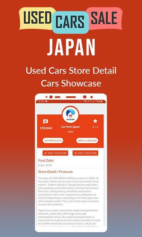 जापान # 1 ऑटोमोबाइल एप्लिकेशन के माध्यम से ऑनलाइन कार खरीदें। आप हजारों इस्तेमाल किए गए वाहनों में से चुन सकते हैं और सही बजट के भीतर अपनी सपनों की कार खरीद सकते हैं। यूज्ड कार जापान एक अग्रणी दो तरफा डिजिटल ऑटोमोटिव मार्केटप्लेस है जो खरीदारों और विक्रेताओं के बीच सार्थक संबंध बनाता है।