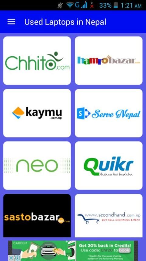 इस मुफ्त Android आवेदन में आप खरीददारों और विक्रेताओं को जो खरीदने और नेपाल में इसका नवीनीकरण / इस्तेमाल लैपटॉप की बिक्री में रुचि रखते हैं के हजारों के डेटाबेस खोज कर सकते हैं। इस एप्लिकेशन के माध्यम से आप नेपाल में लैपटॉप इस्तेमाल के लिए सस्ती कीमतों लगाने के लिए चकित हो जाएगा। आवेदन की तरह प्रामाणिक पोर्टलों में शामिल
