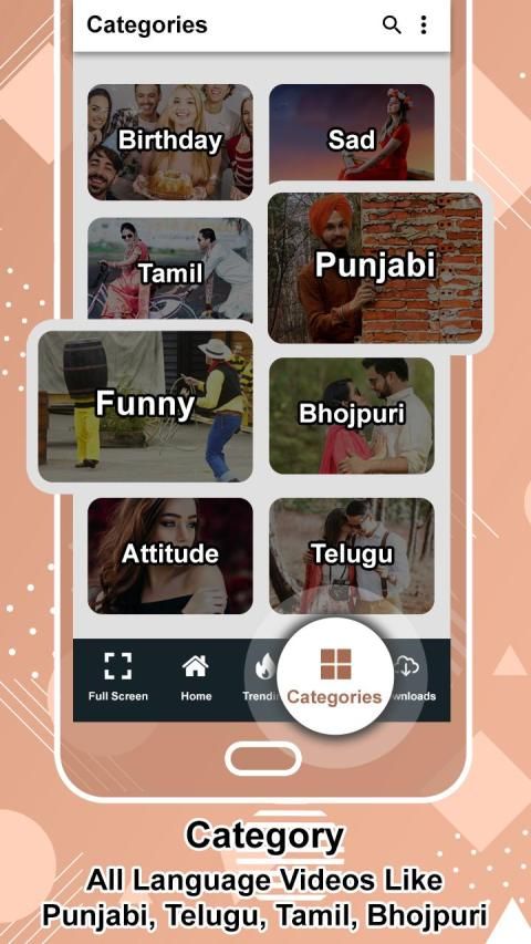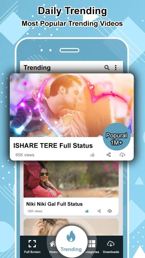 Video Status is the best free short video Status app to watch, download, and share trending videos for whatsapp Videos and other social media. In Video Status, Lyrical video songs status, You can watch and Download Video Status in Indian languages like Hindi, English, Kannada, Islamic, Haryanvi, Bhojpuri, Telugu, Tamil, Marathi, Gujarati, Bengali, Punjabi and Malayalam.