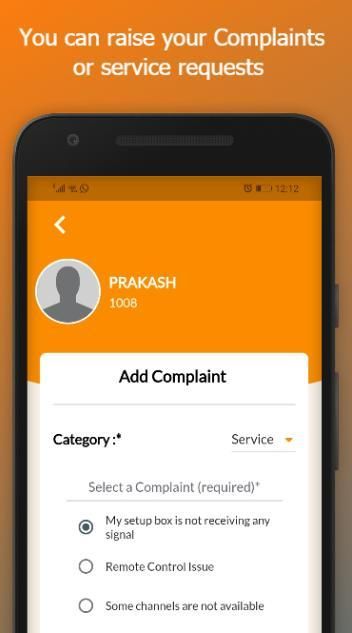 4. आपको भुगतान, शिकायत और सेटटॉप बॉक्स विवरण जैसे विकल्प दिखाई देंगे