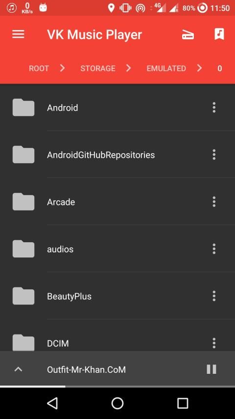 VK Music Player supports standard music file types including ogg, wav, mp3, aac, flac, and etc.
