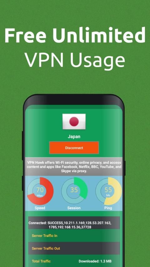 Bypass the firewalls as school proxy while you are at school or at work. Unlike all other VPN clients, there is no time or internet data restriction on usage. VPN Hawk brings a high speed and encrypted VPN connection to your smartphone or tablet for free.