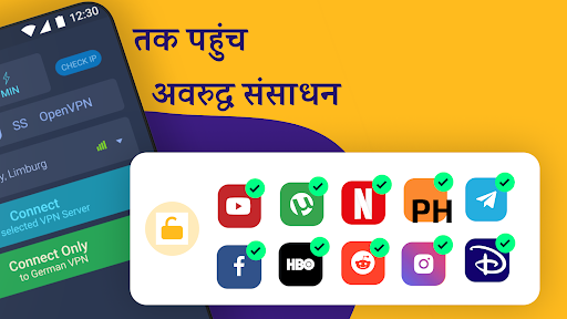 VPN India आपको एक क्लिक में USA IP प्राप्त करने और प्रतिबंधित साइटों और एप्लिकेशन तक पहुंच को अनब्लॉक करने की अनुमति देता है. सुरक्षित और अनाम कनेक्शन OpenSSL कुंजी 2048 बिट्स के साथ OpenVPN कनेक्शन तकनीक प्रदान करता है. त्वरित कनेक्शन - Shadowsocks