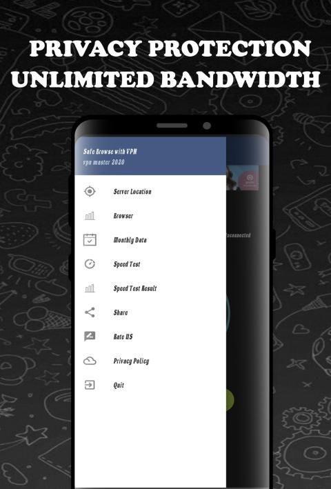 वीपीएन मास्टर 2020 एक आवश्यक उपकरण है। यह आपके कनेक्शन को एन्क्रिप्ट करता है ताकि तृतीय पक्ष आपकी ऑनलाइन गतिविधि को ट्रैक न कर सके, जिससे यह विशिष्ट प्रॉक्सी से अधिक सुरक्षित हो सके। हमने एक वैश्विक वीपीएन नेटवर्क का निर्माण किया है जिसमें अमेरिका, यूरोप और एशिया शामिल हैं और जल्द ही इसका विस्तार और अधिक देश में हो सकता है। अधिकांश सर्वर उपयोग करने के लिए स्वतंत्र हैं, आप किसी भी समय ध्वज और परिवर्तन सर्वर पर क्लिक कर सकते हैं।