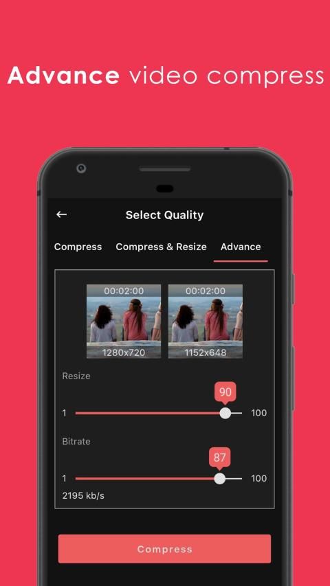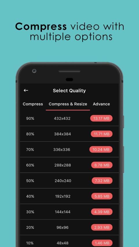 * वांछित रिज़ॉल्यूशन और आकार का चयन करके वीडियो को संपीड़ित करें।