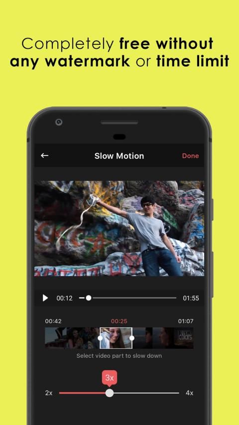 * Adjust video and audio speed and convert specific part of your video into slow motion of fast motion effect.