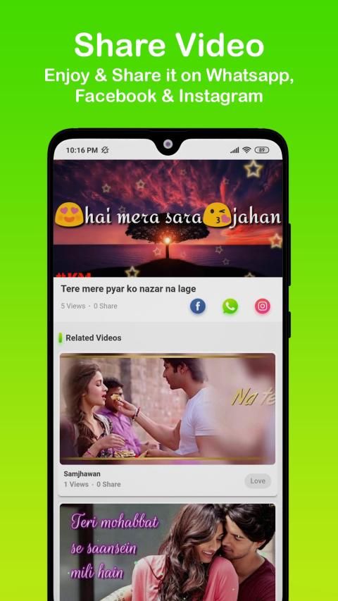 Enjoy best app for Collection of Video status in various language and various categories.