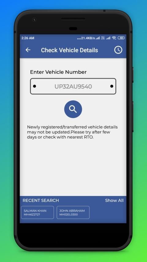 Vehicle Information App is an vehicle information android application where you can find all the details about RTO registered vehicles across the nation in India. The key feature of this app is its accessibility English Language that makes is easy to be used across the nation without any bifurcations of qualifications. Everyone can use this app without any problems all that you need is the vehicle number to access the vehicle search facility if this app.