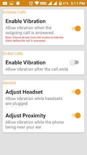 कंपन App में सुविधाओं आने वाली फोन / CALLL के लिए एचटीसी और एलजी जैसे कुछ Android उपकरणों में डिफ़ॉल्ट रूप से लागू किया जा सकता है। लेकिन इस आवेदन इन सुविधाओं पर अधिक नियंत्रण प्रदान करता है:
