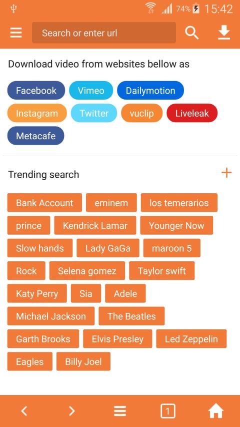 +. Search or enter url in address bar to start browsing videos.