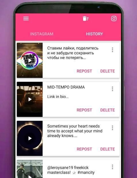* डाउनलोड वीडियो या Instagram और बेल से repost