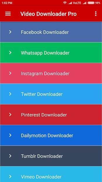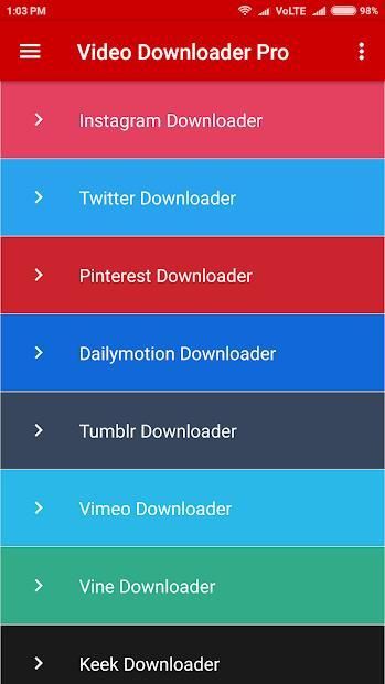 Video Download Pro is URL base video downloader. Download your videos and images from Social Media including Facebook (Video MP4, Gif and image), Twitter, Instagram, Pinterest, WhatsApp, Dailymotion, Vimeo, Tumblr, Keek and Vine.